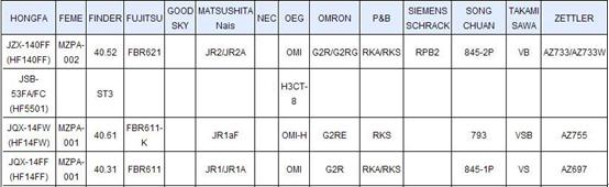 以繼電器為例,廈門宏發(fā)的繼電器產(chǎn)品能對富士通、歐姆龍、松下電工、松川等國際公司的產(chǎn)品進行替代。具體可見下圖,如廈門宏發(fā)的JZX-140FF系列產(chǎn)品可以替代富士通FBR621、OMRON的G2R/G2RG、P&B的RKX/RKS系列產(chǎn)品等。