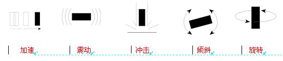 加速、震動、沖擊、傾斜和旋轉(zhuǎn)——除了旋轉(zhuǎn)外,其它四種運動實事上都是加速度在不同時間段的表現(xiàn)。然而,我們?nèi)祟愂菬o法靠直覺來做出運動狀態(tài)的判斷,例如震動是加速還是減速。分別地考慮每一種模式可以幫助我們想出更多可能的應(yīng)用。