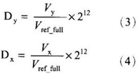 ADS7846內(nèi)部可以通過寄存器的設(shè)置A/D轉(zhuǎn)換器的分辨率設(shè)為8位或12位,在本系統(tǒng)中A/D轉(zhuǎn)換器的分辨率取12位。則P點的二進制輸出代碼為: