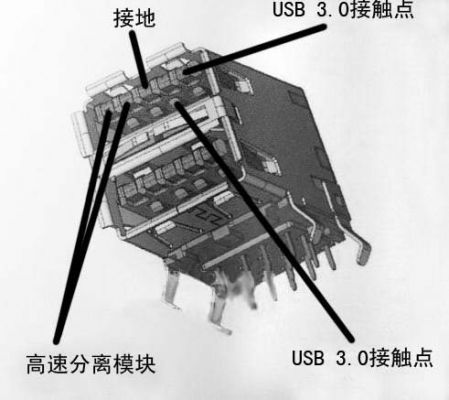 與USB 1.1升級到USB 2.0一樣,USB 3.0仍然采用USB 2.0相同的架構,向下兼容先前的即插即用USB版本,不管是USB 2.0還是USB 1.1設備,都能夠與USB 3.0接口的設備相兼容。從接口結構來看,USB 2.0線纜使用了4條線的封裝設計,所以USB 2.0接口使用了4個金屬觸點,它們分別為+5V取電、數據-、數據+、GND接地。然而USB 3.0并非廣播總線,它在包頭中采用發送列表區段來進行發包,上行接口提供分散式的USB 3.0互聯,下行接口支持USB 2.0設備,從而用簡單的方法實現高速傳輸和兼容性并舉的雙重好處。