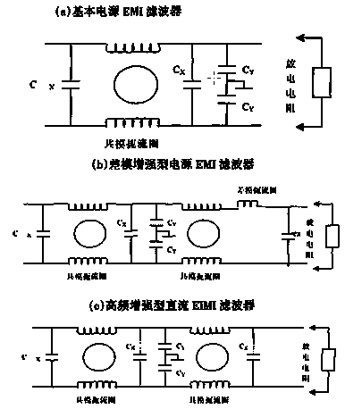 幾種實際使用電源EMI濾波器網絡結構如圖3所示。