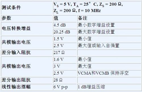 圖1顯示了一個ZIF接收機配置,它使用兩個低噪聲放大器(LNA) ADL5523 一個400MHz至6000MHz正交I/Q解調器ADL5380、一個作為本振(LO)的寬帶頻率合成器ADF4350以及一個雙通道數字可編程可變增益放大器(VGA)AD8366。表1顯示了相關ADL5380接口和增益參數。