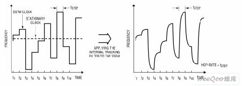 圖2:LTC6909的偽隨機(jī)調(diào)制和內(nèi)部跟蹤濾波器。