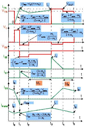 在t2時,D1二極管的電流達到0 A,BC²變成一個傳統的功率升壓轉換器。當功率晶體管保持通態時,在t3點,主LB 線圈內和小L線圈內的電流上升到I1。
