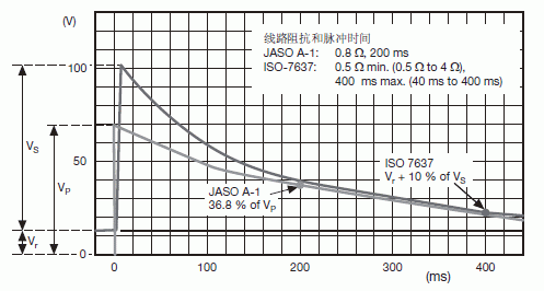 兩個熟知的試驗?zāi)M了這個條件:針對14V動力總成的美國ISO-7637-2 Pulse 5和日本JASO A-1和針對27V動力總成的JASO D-1。在本節(jié)中,我們將回顧在14V動力總成中用于甩負(fù)荷的TVS應(yīng)用。