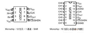 AGND 與 DGND;此處圖解的轉換器為Microchip 的 MCP4008 與 MCP3001
