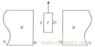 霍爾傳感器是利用霍爾效應實現(xiàn)磁電轉換的一種傳感器。它具有靈敏度高,應用廣泛的特點。其工作原理如圖2所示:一塊半導體薄片,其長度為L,寬度為B,厚度為D,置于磁感應強度為B的磁場中,在相對的兩邊通以控制電流I,且磁場方向與電流方向正交,則在半導體的兩邊將產生一個與控制電流和磁感應強度乘積成正比的電勢U,該電勢即為霍爾電壓,用UH表示,即UH=KHIB,其中KH為霍爾元件的靈敏度,半導體薄片就是霍爾元件。