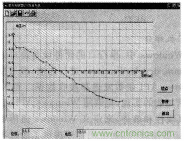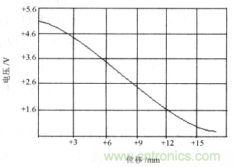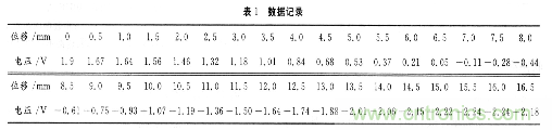 從圖7中PC機界面顯示位移一電壓坐標圖,表1記錄的數(shù)據(jù)以及圖8在示波器上顯示的霍爾線性電路理想電壓一位移曲線圖相比較,可以發(fā)現(xiàn)由于傳感器實驗臺受外界干擾等原因使得輸出信號輸出誤差在所難免,而且沒有電平轉換,使得VB繪圖中得到的數(shù)值存在負值;但是可以在圖中看到傳感器輸出的電壓值在正負之間有明顯的對稱性,與要求輸出的理想輸出信號波形相符合,證明本系統(tǒng)運行良好,設計的非常成功。