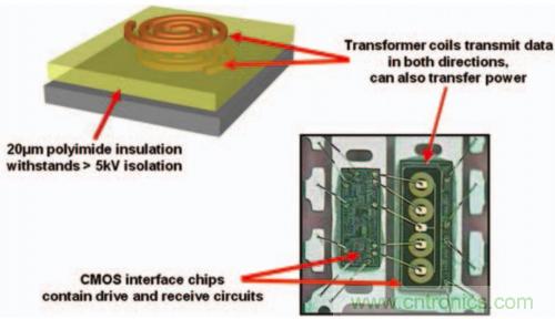 數字隔離器采用晶圓CMOS工藝制造,僅限于常用的晶圓材料。非標準材料會使生產復雜化,導致可制造性變差且成本提高。常用的絕緣材料包括聚合物(如聚酰亞胺PI,它可以旋涂成薄膜)和二氧化硅(SiO2)。二者均具有眾所周知的絕緣特性,并且已經在標準半導體工藝中使用多年。聚合物是許多光耦合器的基礎,作為高壓絕緣體具有悠久的歷史。