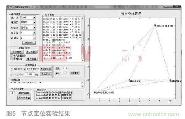 本文設(shè)計(jì)了節(jié)點(diǎn)的通信方式及消息,在統(tǒng)一的消息格式內(nèi),根據(jù)所要執(zhí)行的任務(wù)的不同,具體設(shè)計(jì)各種應(yīng)用消息;其次,根據(jù)系統(tǒng)需求和節(jié)點(diǎn)類型的不同,設(shè)計(jì)并說明了不同節(jié)點(diǎn)的程序流程;同時(shí)設(shè)計(jì)了良好的人機(jī)交互定位界面;最后,對(duì)網(wǎng)絡(luò)節(jié)點(diǎn)的測(cè)距性能和定位性能進(jìn)行實(shí)驗(yàn)分析,驗(yàn)證了系統(tǒng)基本滿足對(duì)測(cè)距范圍和測(cè)距精度要求和節(jié)點(diǎn)定位的技術(shù)要求。