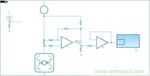 為確保系統(tǒng)正常工作,必須仔細選擇這些器件參數(shù)。為了使OP_A輸出不飽和,在選擇參數(shù)時必須保證|Vgs|電壓值很小。