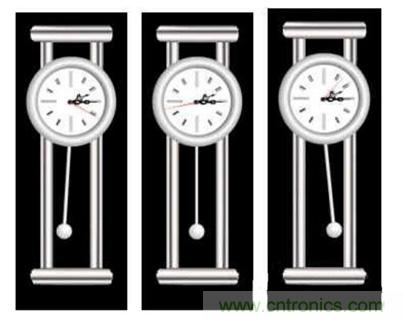 最后由于摩擦的作用,任何物理振蕩都會(huì)停止。要繼續(xù)運(yùn)動(dòng),必須在每次循環(huán)中添加少許能量。在擺鐘里,保持鐘擺移動(dòng)的能量來自彈簧。鐘擺在每次敲鐘時(shí)都得到一點(diǎn)推力,以彌補(bǔ)因摩擦而失去的能量。
