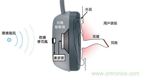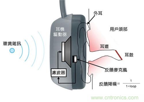反饋降噪耳機(圖5)的工作原理主要是檢測耳鼓區域的噪聲,然后形成一個基本的反饋回路,以便最大限度地降低該區域的噪聲級。