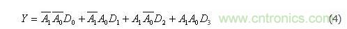 由表2可知,具有兩位地址輸入A0、A1的4選1數據選擇器,當使能控制端=0時,輸出與輸入之間的邏輯關系式為