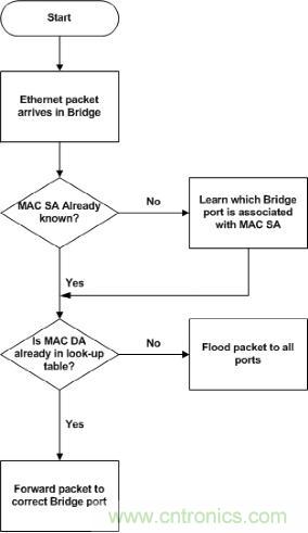在圖1中,如果傳入幀的源地址(SA)以前沒有記錄,則將其與幀的傳入端口號一起添加到地址數據庫中。如果目標地址(DA)已經存在于網橋的查找表中,則數據包會相應地轉發,否則幀將被泛洪處理。多年來,管理L2所用協議的IEEE標準(如802.1 MAC橋、VLAN和基于端口的網絡訪問控制標準)都集中在以太網幀的前16個字節。這些標準也在不斷發展,最近增加的包括以太網音視頻橋接技術(AVB)和時間敏感網絡標準(如802.1AS)。特別是,在汽車環境中對確定性網絡的需求正變得越來越急迫,以確保網絡中及時和可靠的數據傳輸。將所有ECU鎖定在單個主時鐘源并保持AV內容質量只是其中兩個例子,更多增強的功能還在引入以便于檢查OSI 3層信息,例如IPv4 / IPv6數據包優先級和IPv4 / IPv6偵聽。