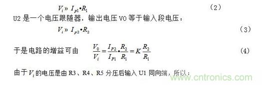 U1構成一個負反饋放大器,其同相輸入端和反相輸入端的電壓應近似相等,滿足: