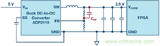 圖6. 當(dāng)沒有環(huán)路補(bǔ)償引腳可用時(shí),利用前饋電容可以調(diào)節(jié)控制環(huán)路。