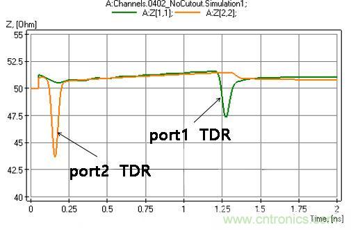 圖5圖6對比,發現未處理之前阻抗的跳躍很明顯,隔層處理后的阻抗改善很多,幾乎沒有任何階躍與不連續。
