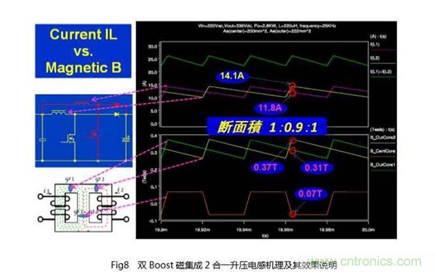 對于功率大的PV逆變器,因其常常采用雙Boost的結構,為此若進一步引入2合一式的磁集成(Integrated Magnetics)技術,還可以進一步提高效率,降低成本。