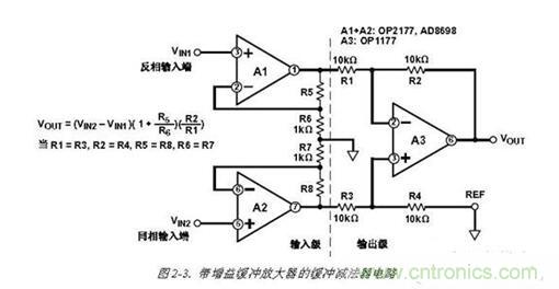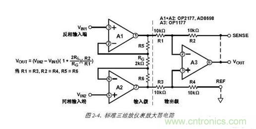 到這里,我們導出了這個經(jīng)典電路的;來龍去脈: 差分放大器--》前置電壓跟隨器--》電壓跟隨器變?yōu)橥喾糯笃?-》三運放組成的儀用放大器。