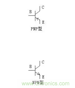 一般,管型是NPN還是PNP應(yīng)從管殼上標注的型號來辨別。依照部頒標準,三極管型號的第二位(字母),A、C表示PNP管,B、D表示NPN管,例如:
