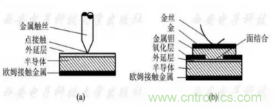肖特基勢壘二極管有兩種管芯結(jié)構(gòu):點接觸型和面結(jié)合型如圖所示。