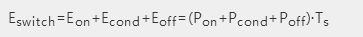 MOS管主要損耗:開(kāi)關(guān)損耗,導(dǎo)通損耗,截止損耗,還有能量損耗,開(kāi)關(guān)損耗往往大于后者,小部分能量體現(xiàn)在“導(dǎo)通狀態(tài)”,而“關(guān)閉狀態(tài)”的損耗很小幾乎為0,可以忽略不計(jì)。具體使用下面公式計(jì)算: