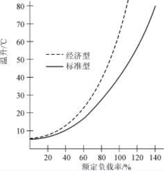 環(huán)形變壓器的溫升特性曲線示于圖6,從圖6 可看出環(huán)形變壓器的溫升是較低的,對(duì)標(biāo)準(zhǔn)型系列,即便是過載120%,溫升也不超過70℃。