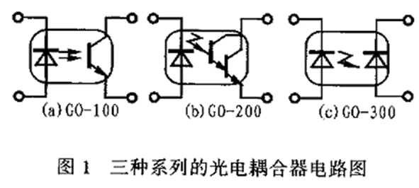 光電耦合器的主要結(jié)構(gòu)是把發(fā)光器件和光接收器件組裝在一個密閉的管殼內(nèi),然后利用發(fā)光器件的管腳作輸入端,而把光接收器的管腳作為輸出端。當(dāng)在輸入端加電信號時,發(fā)光器件發(fā)光。這樣,光接收器件由于光敏效應(yīng)而在光照后產(chǎn)生光電流并由輸出端輸出。從而實現(xiàn)了以“光”為媒介的電信號傳輸,而器件的輸入和輸出兩端在電氣上是絕緣的。這樣就構(gòu)成了一種中間通過光傳輸信號的新型半導(dǎo)體電子器件。光電耦合器的封裝形式一般有管形、雙列直插式和光導(dǎo)纖維連接三種。圖1是三種系列的光電耦合器電路圖。
