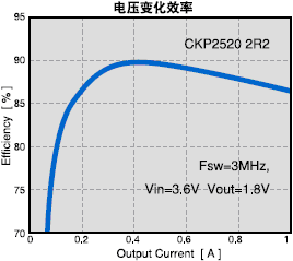 數(shù)年前,開關(guān)頻率為500KHz,電感值為4.7μH 到10μH 的取值范圍。最近由于采用了提高開關(guān)頻率的電路設計,頻率由1MHz 提升到了3MHz,與此相對電感值也降低到了2.2μH。