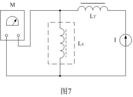 圖7是采用電流迭加法測(cè)試開(kāi)關(guān)變壓器電感量或伏秒容量的工作原理圖。圖7中,M是電感測(cè)試儀,LT是隔離電感,I是恒流源,Lx為待測(cè)開(kāi)關(guān)變壓器的初級(jí)電感。LT的電感量必須遠(yuǎn)遠(yuǎn)大于被測(cè)開(kāi)關(guān)變壓器初級(jí)線(xiàn)圈的電感量。下面我們來(lái)介紹圖7的工作原理。