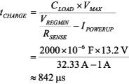小于2 ms的定時器值足以保護MOSFET,大于0.9 ms則足夠對負載充電。如果選擇的時間恒定為1 ms,那么電容可通過下式進行計算: