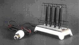 愛迪生發(fā)明的白熾燈把世界帶入了電氣時(shí)代,但墻壁插座并非與燈泡同時(shí)出現(xiàn)。考慮成本因素,當(dāng)電扇、電烤面包機(jī)、吸塵器、電吹風(fēng)出現(xiàn)時(shí),它們?nèi)匀谎匾u了燈泡的供電方式——接到燈頭座上(圖1.1)。盡管HarveyHubbell在1904年發(fā)明了更方便的2芯插頭/座(圖1.2),但采用燈頭取電的方式一直沿用到20世紀(jì)20年代。