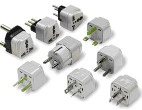 可以預(yù)見,在相當(dāng)長的時(shí)間內(nèi),交流電插頭/座還會(huì)維持現(xiàn)狀。在不能統(tǒng)一標(biāo)準(zhǔn)而又要解決互換使用的情況下,轉(zhuǎn)接適配器(圖2.3)成為目前行之有效的辦法。實(shí)現(xiàn)將某種插座轉(zhuǎn)換成能與多種插頭匹配的樣式(圖2.4)。適配器自身插頭改進(jìn)后,適用范圍可更廣。