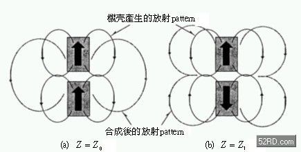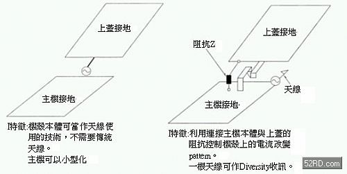此處采取在連接移動(dòng)通訊系統(tǒng)折疊機(jī)殼上增設(shè)阻抗(Impedance)Z,如此就能夠利用一種天線獲得多樣的放射pattern,這種設(shè)計(jì)最大優(yōu)點(diǎn)是可以大幅縮小天線的設(shè)置場所與天線結(jié)構(gòu)物的尺寸。