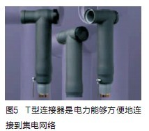 多數(shù)電力傳輸連接器采用直線型連接或T型連接(如圖5)。由于集電網(wǎng)絡(luò)位于地下,可靠性尤為重要。與機(jī)艙的機(jī)械部件需要耐磨與精密電子等需求不同,集電網(wǎng)絡(luò)不像渦輪機(jī)那樣需要連接提供高速及簡(jiǎn)便維護(hù)性。安裝完畢后,集電網(wǎng)絡(luò)將工作多年。而集電網(wǎng)絡(luò)的故障將導(dǎo)致許多發(fā)電機(jī)停機(jī)。同樣,集電網(wǎng)絡(luò)到變電站的連接故障將導(dǎo)致整個(gè)風(fēng)力發(fā)電站癱瘓。