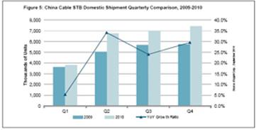 2010年中國有線機頂盒出貨量將達(dá)到2510萬個,比2009年的2010萬個增長24.8%。由于各省有線電視運營商加快發(fā)展用戶,以及小型運營商推動客戶從模擬向數(shù)字服務(wù)過渡,預(yù)計第二季度創(chuàng)下全年的最強勁增長水平。2010年第二季度有線機頂盒出貨量增長到680萬個,比2009年同期的500萬個增長34%。