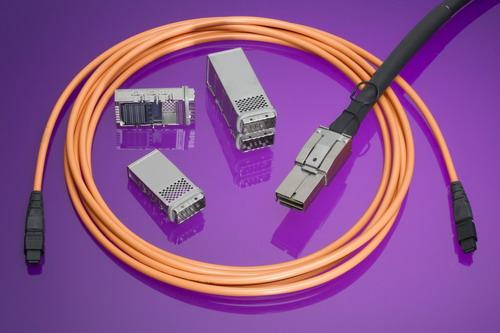 有源光纜組件:CXP 有源光纜(AOC)組件和可插拔收發(fā)器模塊采用了12個發(fā)射(TX) 和 12 個接收 (RX)通道,在多模光纖上提供每通道10 Gbps的數(shù)據(jù)速率,傳輸距離長達(dá)1km (3280.840’)。光纜終端的光電轉(zhuǎn)換由包含了專門針對低功耗和高可靠性而優(yōu)化的光引擎的集成式收發(fā)器模塊來完成。