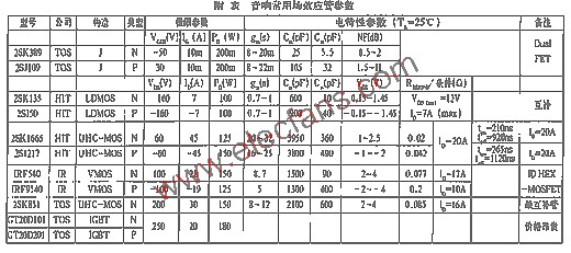 音響常用場效應管的參數如下表: