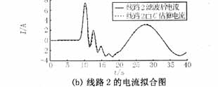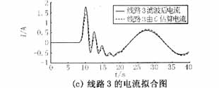 對上述方法用Matlab編程,對仿真數據進行分析,求解系統對地電容值。考慮到噪聲污染以及各種隨機干擾的存在,先對故障數據進行數字濾波,將17次以上的諧波去除后再對仿真或實測數據進行運算。本例所得由電容所計算電流與濾波后電流擬合波形如圖3所示(本文對數據濾波時采用的是巴特沃思濾波器,除去9次諧波以上的高次諧波)。