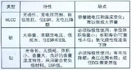鑒于醫療設備對高可靠性的要求,本文就商用鉭電容和醫用鉭電容的設計取舍進行了舉例,并介紹了有助于改善性能的一些新發展。本文還重點介紹了電容技術的一般性選擇標準和可以在便攜式醫療設備中使用的封裝技術的進展情況。在便攜式醫療設備中最常用的大容量電容類型有多層陶瓷電容(MLCC)、鋁電解電容和固體鉭電容。表1就每種電容技術的某些一般特性和可能的缺點進行了介紹。