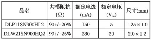 在研究這種方法的過程中,用一根3米長線纜連接兩個HDMI設(shè)備,測試從1~5GHz的輻射噪音。表1列出了幾種不同型號共模扼流圈的規(guī)格及其參數(shù),它們分別是同樣尺寸(1.25×1.0mm)的DLP11SN900HL2和DLP11SA900HL2,以及2.0×1.2mm尺寸的DLW21SN900HQ2。