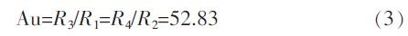 前置放大電路采用高效率、軌對軌、低噪聲運放芯片OPA350構成同相寬帶放大電路。信號輸入端串聯電容達到隔直耦合作用。同時因單電源供電,在運放同向端給2.5V偏置。設置反饋電阻為電位器,可動態改變放大器的增益1~20倍增益連續可調。