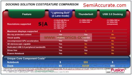 AMD的Lightning Bolt技術與Intel雷電接口比的不是更高的帶寬,而是針對后者在多設備連接及充電上的不足上有備而來。