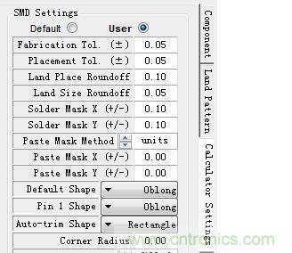 4、點擊Calculator Settings(豎排字),選User將Solder Mask X及Y改為0.1(一般阻焊層比焊盤大0.1mm)