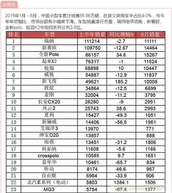 根據中國汽車工業協會的數據,2015年上半年380余款車型的銷量按照級別分類如下: