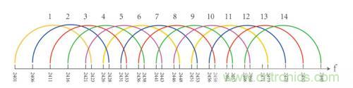 Wi-Fi在802.11b/g的標(biāo)準(zhǔn)的工作頻段為2.4GHz(2.4GHz-2.4888GHz),劃分為14個信道,每個信道帶寬為22MHz,Wi-Fi頻譜列表如下所示:
