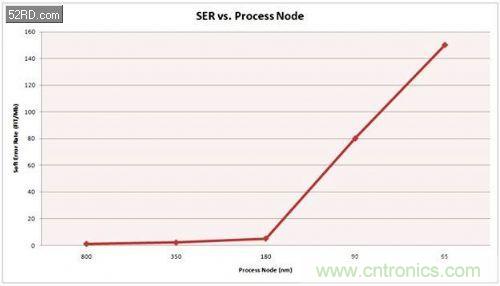 更易出現(xiàn)軟錯(cuò)誤:工藝節(jié)點(diǎn)從130nm縮小到22nm后,軟錯(cuò)誤率預(yù)計(jì)將增加7倍。