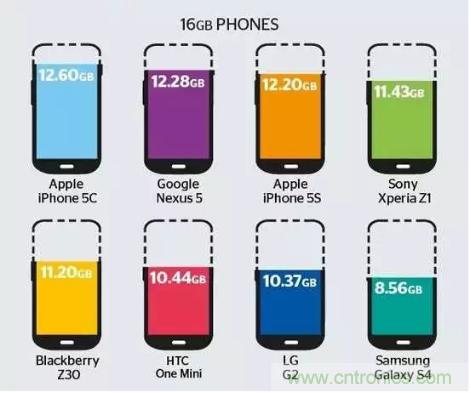 以下是一些旗艦級的手機(jī)16G空間實(shí)際可用的空間的對比圖。