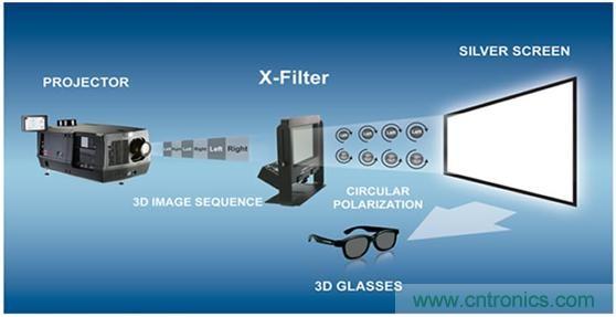 偏光式3D的基本原理其實與紅藍3D差不多,只不過在技術上相對成熟,采用兩個不同偏振方向的偏振片作為眼鏡,這樣垂直偏振的左眼將接受不到水平偏振的光,同樣水平偏振的右眼也接受不到垂直偏振的光。這樣我們在投射圖像的時候只需要將不同角度的圖像信息以不同偏振態的光發射出來,我們的兩個眼睛就會分別看到不同角度的信息,形成立體視覺。